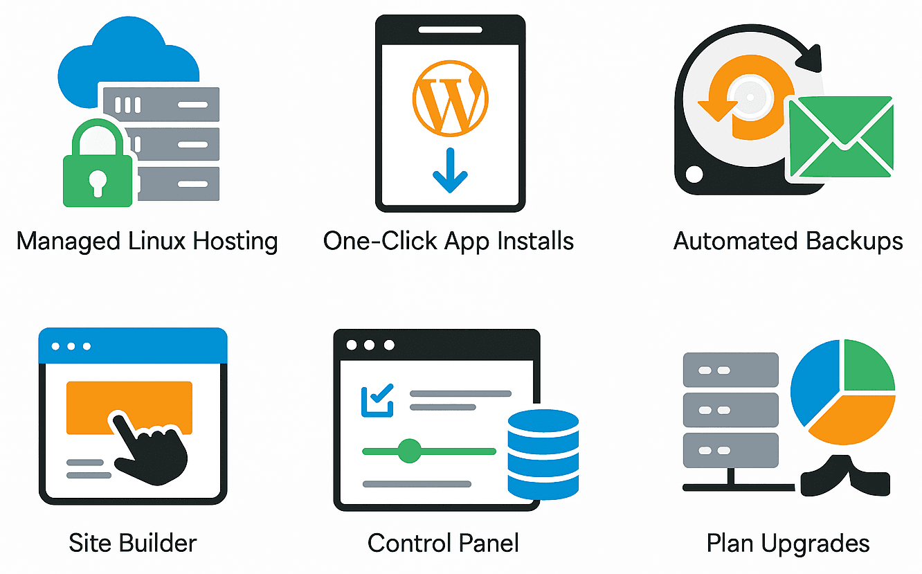 - One‑Click App Installs — fast deployment of WordPress and other popular platforms with sensible defaults.